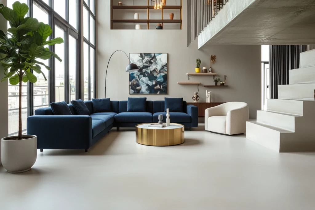 Revêtement moderne et ultra-résistant, idéal pour les intérieurs contemporains. Surface continue, facile à entretenir, et personnalisable dans de nombreuses teintes.